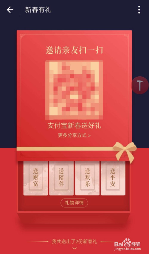 我们点击进入后,就会看到有一个“邀请亲友扫一扫”,可能会送“财富”,送“陪伴”,送“欢乐”,送“平安”。接下来小编就来大家详细介绍一下。