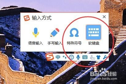 如果你不会使用快捷键或者不会使用shift,甚至你的键盘shift坏了,我们可以启用软键盘来输入。软键盘的打开方式是按输入法旁边的按钮。