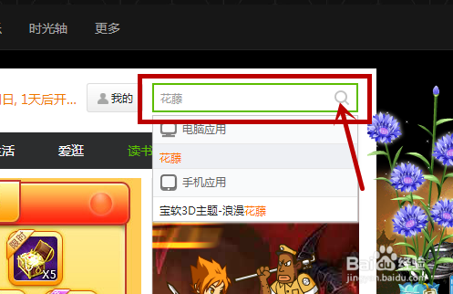 在【应用中心】页面的右侧,有一个搜索的导航栏,将【花藤】输入之后,点击右侧的“搜索标志”进行搜索。