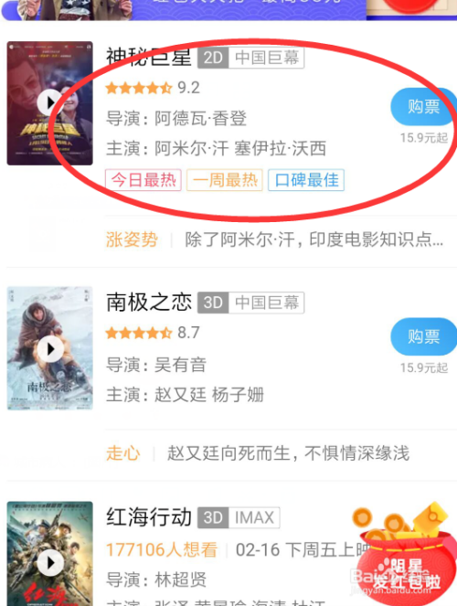 更改完成之后我们就可以选择我们想看的电脑买票了,这里随便以一个片子为例子。点击这个片子后面的购票按钮。