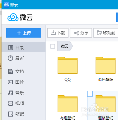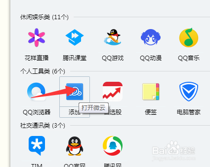 如下图所示,打开微云(不是添加)。