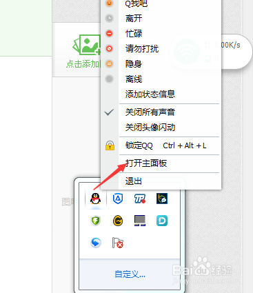 如图所示,在QQ图标上点击右键,选择打开主面板。