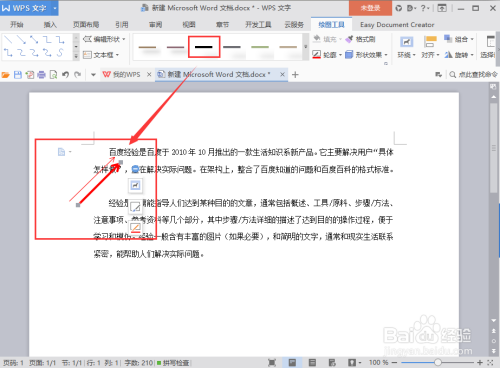 拖动鼠标,在文档内容编辑页拖出箭头。
