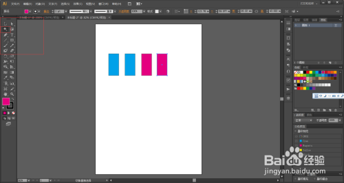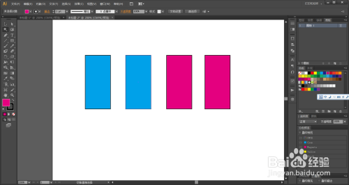 用魔棒工具选中红颜色的矩形,会发现 文档中红颜色的矩形会全部选中,