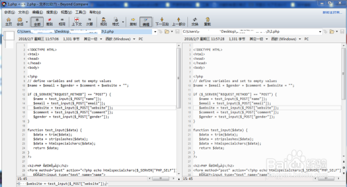 之后将两份要比较的文本文件,分别拖入Beyond Compare软件的两侧。