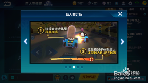我们可以通过不断的碰撞,然后会增大体型并且获得加成,如果我们的能量格数越多体型越大,那么我们的BUFF越强。但是当我们的体型达到满格之后如果再进行碰撞,我们将会爆炸并且会被清空能量【来自QQ 飞车巨人赛介绍】