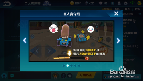 小编就给大家说一说巨人赛,当我们的能量到3格以上我们就可以碾压3格能量以下的玩家,而我么的能量就是通过碰撞才得来的。【来自QQ 飞车巨人赛介绍】