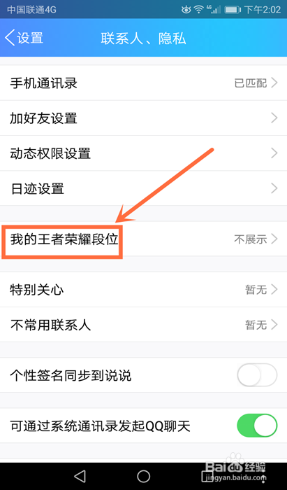 6.第六步,将我的王者段位右侧的按钮打开,就可以向好友展示了。