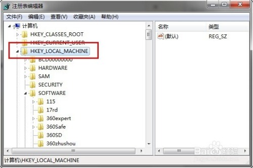 在““注册表编辑器””里面找到HEKY LOCAL MACHINE,再找到software