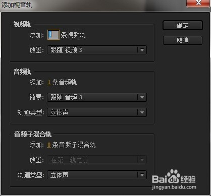 在弹出的子菜单中,有音频、视频轨的添加数量,根据我们的需要添加即可。