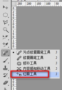图片放大到合适大小时,在左侧工具箱中选择“红眼工具”。