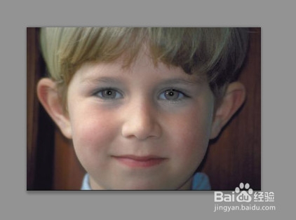 首先,用 PS 打开一张需要去除红眼的图片。比如,我这里的小男孩图片。