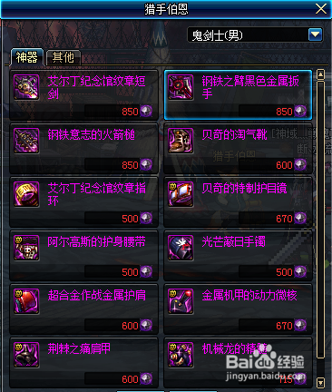 附:DNF猎手伯恩的装备一览图,二图为猎手 伯恩的商店卡片一览图片