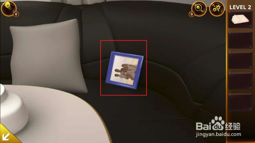 注意在柜子上方有红、绿色的相框,凳子上密码相中有黑色的相框,沙发上有蓝色的相框,按照相框颜色和人数对应输入沙发上箱子的密码,得到钉锤