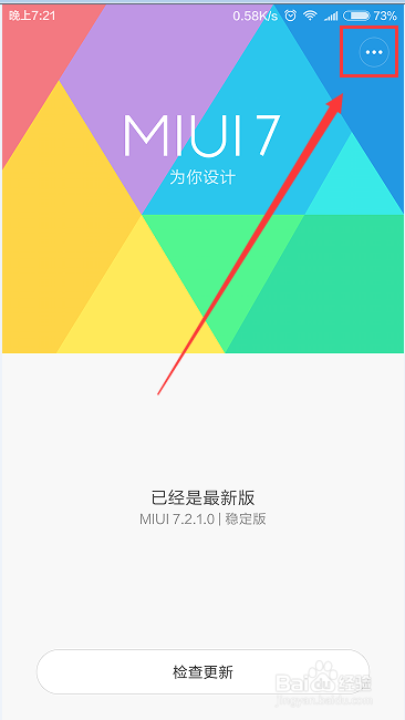 进入系统更新界面,右上角有一个隐藏的菜单,就是三个小点点“...”,