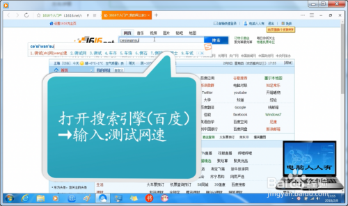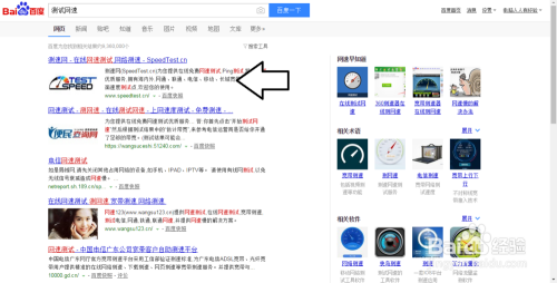 在浏览器的搜索引擎中输入网络测试关键词→搜索一下。