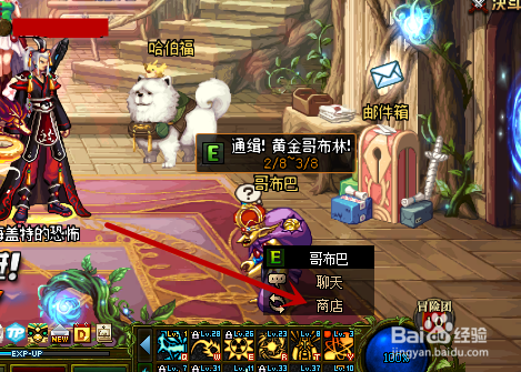 当我们有足够的”黄金哥布林袖珍罐碎片“后,我们在赛利亚房间点击”哥布巴“NPC,在弹出来的选项中点击”商店“选项,如图所示。