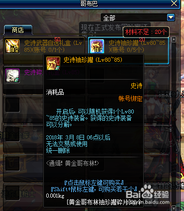 之后我们可以通过”黄金哥布林袖珍罐碎片“在商店中兑换各种奖励,还有史诗装备哦,如图所示。