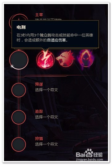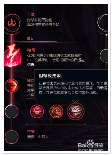 选择“主宰”作为“主系符文”(猎杀并消灭猎者)。