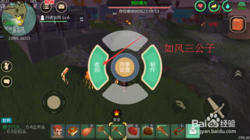 有了原材料后,然后点击功能菜单→制作按键,之后再在设施栏中找到篝火图标并进行点击。