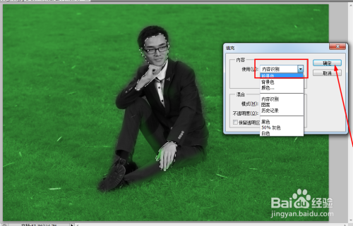 第九步,在弹出来的填充对话框我们现在前景色填充,也就是刚才我们取样的颜色,对于其他的填充类型可以尝试一下,内容识别是去除小瑕疵和水印的使用发挥了很大的作用。