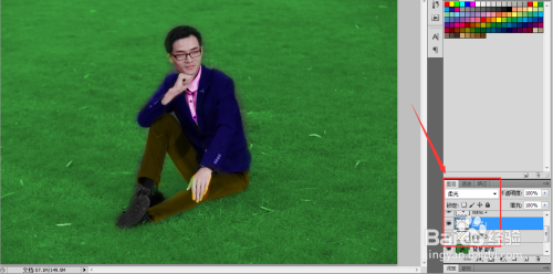 那么我们首先对草地部分进行上色,就是做出草地的选区,可以通过磁性套索工具、钢笔工具等等只要做出来就可,今天我用蒙版工具做出选区。