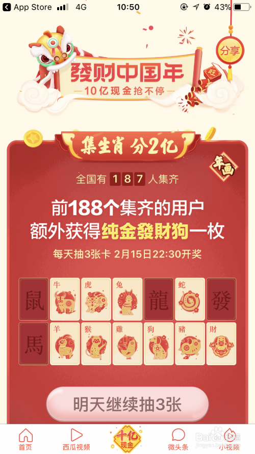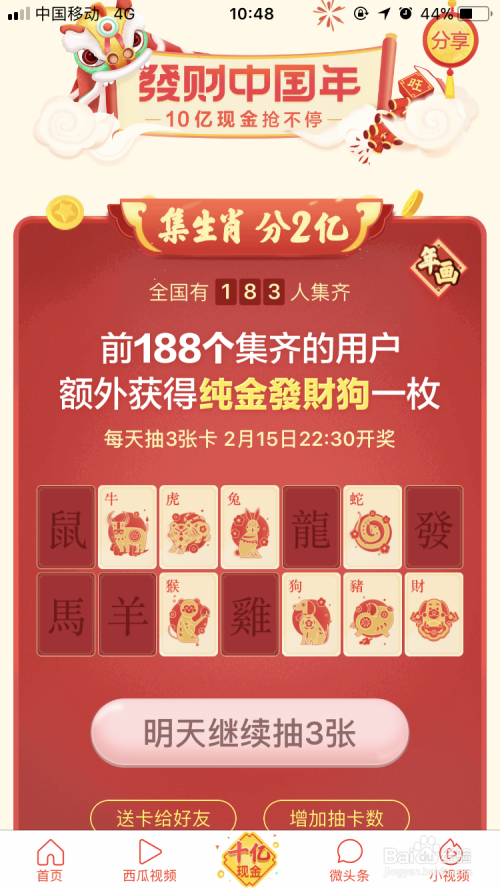 现在过年越来越没意思,但是线上的集福卡活动越来越多,今天小编就来分享下进入头条如何获得更多的生肖卡。