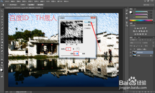 可以通过运动方向的角度也控制图片模糊的方向。如图所示,我们设置参数为:角度-45,距离15.这样我们得到了如图所示的效果。