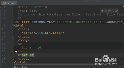 新建好的目录如下所示。我们在index.jsp页面中定义一个变量int x = 10;