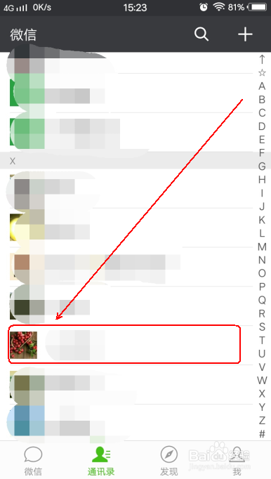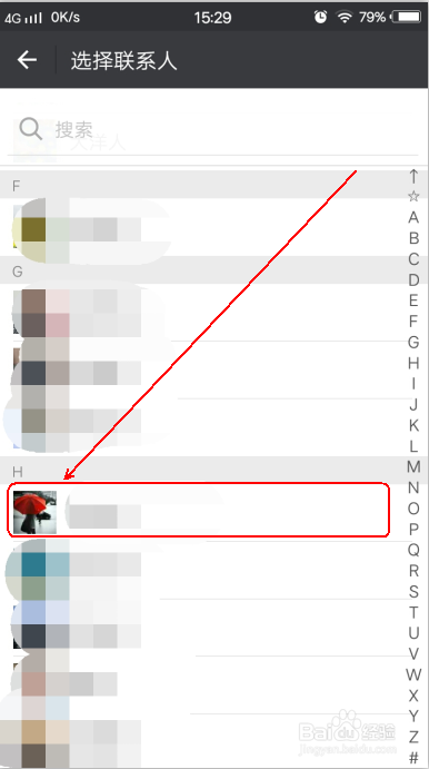 在通讯录里,找到要发名片的好友。