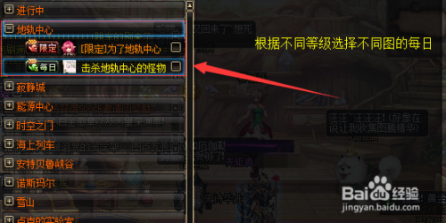 选择自己角色等级对应的推荐图。比如小编角色是90级,所以需要点击“地轨中心”。然后打开后里面有个每日任务,点击接受。