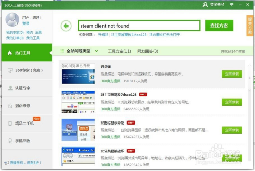 在搜索栏输入“steam client not found”进行问题搜索,