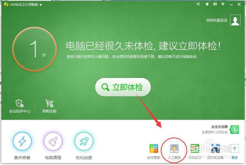 打开安全卫士单击“人工服务”