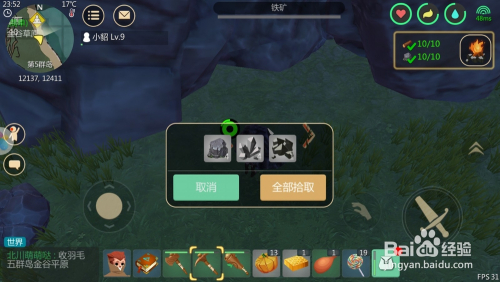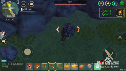 然后再去找铁矿,长得跟石头相似,用背包的木矿镐点击铁矿。