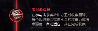 ‘眼球收集器’,增加排眼和参与英雄击杀的收益(所以不要再无脑单带了,团战还是要参加的)
