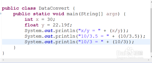 10/3是两个int类型相除,应该得到整数,而使用强制类型转换后将10转为float常量,那么结果就应该是float类型。