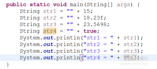 实际上,还存在一种自动的转换,即所有类型都向String类型转换。String是一个Java内置的字符串类,将一系列字符序列用双引号""引起来,用来表达一系列char类型的字符的序列。基本类型与String类用+连接就会自动转为String类(实际上我们已经使用过了)。如下是字符串与基本类型用+连接的示例。