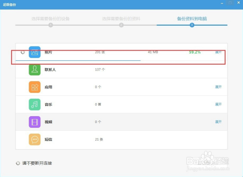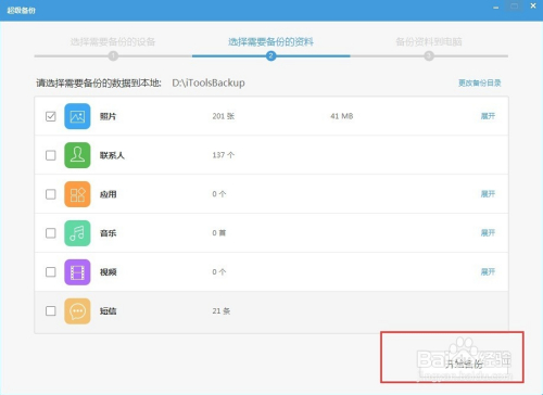 只保留“照片”之前的对勾,然后点击“开始备份”