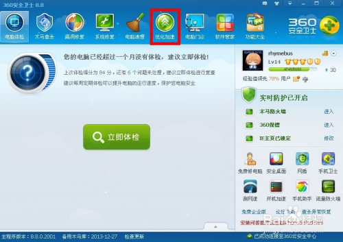 启动360安全卫士,选择“优化加速”选项卡!