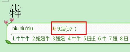 举例来个“犇”,拆下来是牛牛牛,也就是“niuniuniu”,相当便捷。