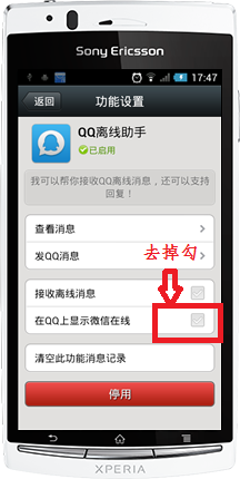 在QQ离线助手设置界面将在QQ上显示微信在线的勾去掉!好了,和QQ一样可以隐身了!