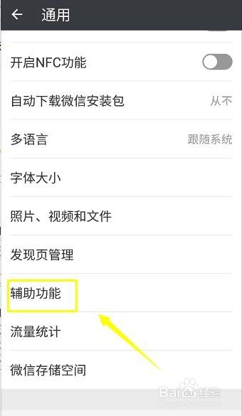 在通用设置页面选择功辅助能选项进入,如下图所示