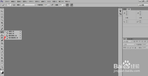 打开PS,可以看到左侧的工具栏里有画笔工具,可以直接用鼠标点击,也可以用快捷键B。