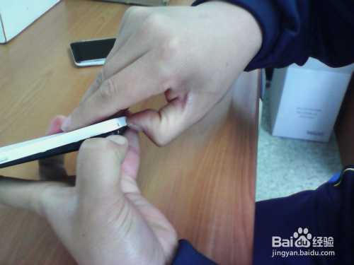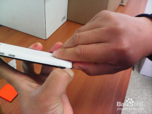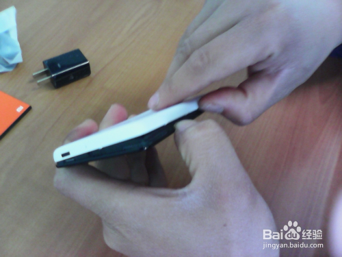 刚开始不要太用力,慢慢的用指甲扣住USB接口处,左右旋转一下,就会有细小的缝隙露出。
