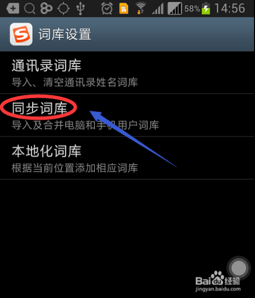 然后在该设置下有三个选项,分别是通讯录词库、同步词库以及本地化词库,我们点击中间的“同步词库”