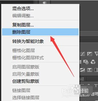 删除图层有的图层使用完后不需要了,这时就可以删掉它了。选中图层,按Del键或者选中图层后单击鼠标右键,选择【删除图层】即可。