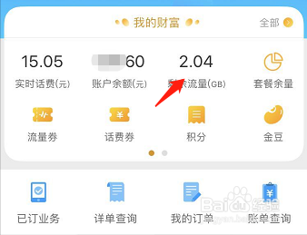 在剩余流量页有个流量查询,点击进入查询;