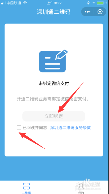 用手机号码注册后进入下图页面,绑定相关的微信支付。这时候需要同意协议才能进行绑定。