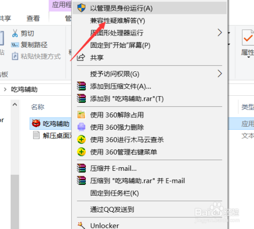 找到辅助之后这里建议的打开方式是使用管理员模式运行打开。