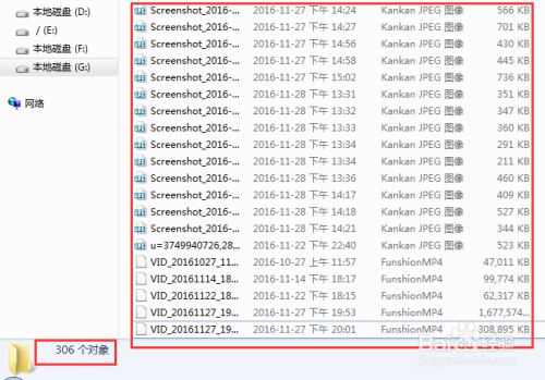 现在已经成功地将手机的306个文件,全部导出到电脑的G盘里了。可以文件夹中查看到所有的【图片和视频】格式文件了。请确定全部成功导出之后,可以将手机上的文件删除了。